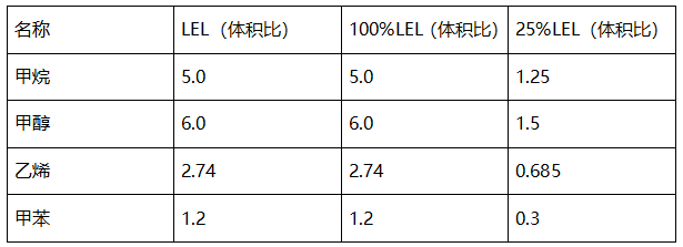 设计25%LEL状态的此空间只有甲烷一种可燃气,那么此时此空间有1.25m3甲烷98.75m3空气